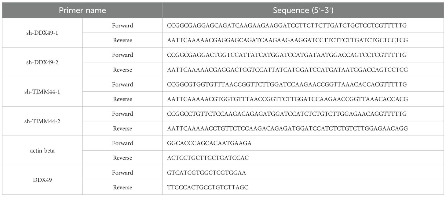 The human DDX49 gene resides in the 19p13.11 region of chromosome 19 and comprises 14 exons. As a member of the DEAD-box helicase family, the DDX49 protein, alternatively referred to as DBP8, plays a crucial role in various cellular processes (24). Previous studies have firmly established the significant overexpression of DDX49 across diverse cancer types, strongly indicating its potential involvement in cellular oncogenic transformation (24, 25). However, despite these findings, the role of DDX49 in colorectal cancer remains largely unexplored, with no comprehensive studies conducted to date. To address this gap, this study is dedicated to a thorough investigation of DDX49’s expression, functional implications, and underlying mechanisms in CRC. The ultimate goal is to generate valuable insights that can inform and guide future strategies for the prevention and treatment of CRC.