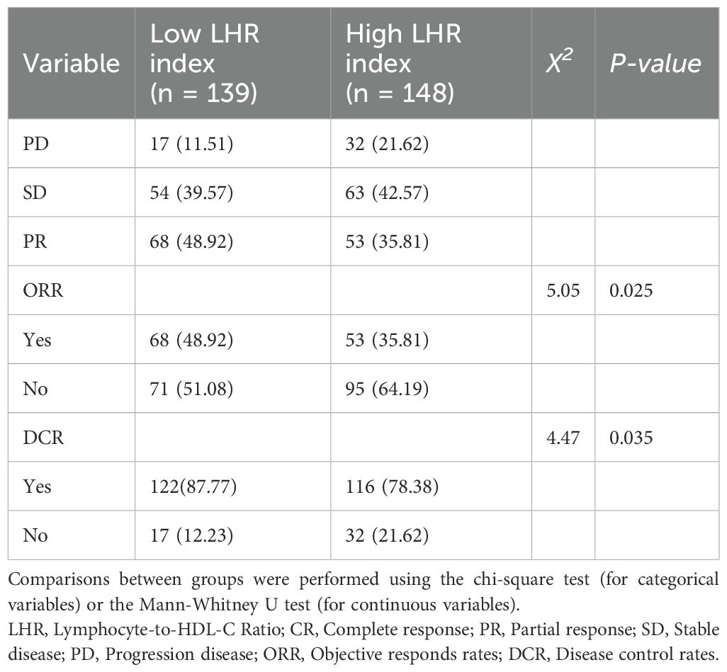 Table 2. Tumor responses of Lymphocyte-to-HDL-C Ratio < 35.3 and Lymphocyte-to-HDL-C Ratio ≥ 35.3, n (%).