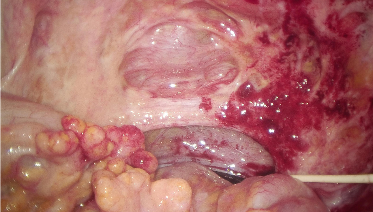 Laparoscopic exploration revealed recurrence of abdominal tumors.