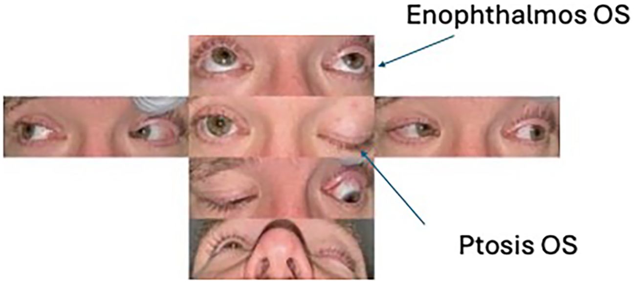 A 39-year-old man presented to an outside hospital for acute-onset left upper eyelid ptosis. The ophthalmic exam was notable for left-sided decreased visual acuity, upper eyelid ptosis, and optic disc edema (Figure 1). The MRI result revealed an enhancing mass in the left superior orbital apex (Figure 2). The laboratory studies were nonspecific with a slightly elevated erythrocyte sedimentation rate (ESR), C-reactive protein (CRP), and antinuclear antibodies (ANA). The patient was diagnosed with presumed idiopathic orbital inflammation, was treated with intravenous methylprednisolone, and was discharged on oral prednisone. However, with much surprise to the outside clinic, there was no improvement in his symptoms.