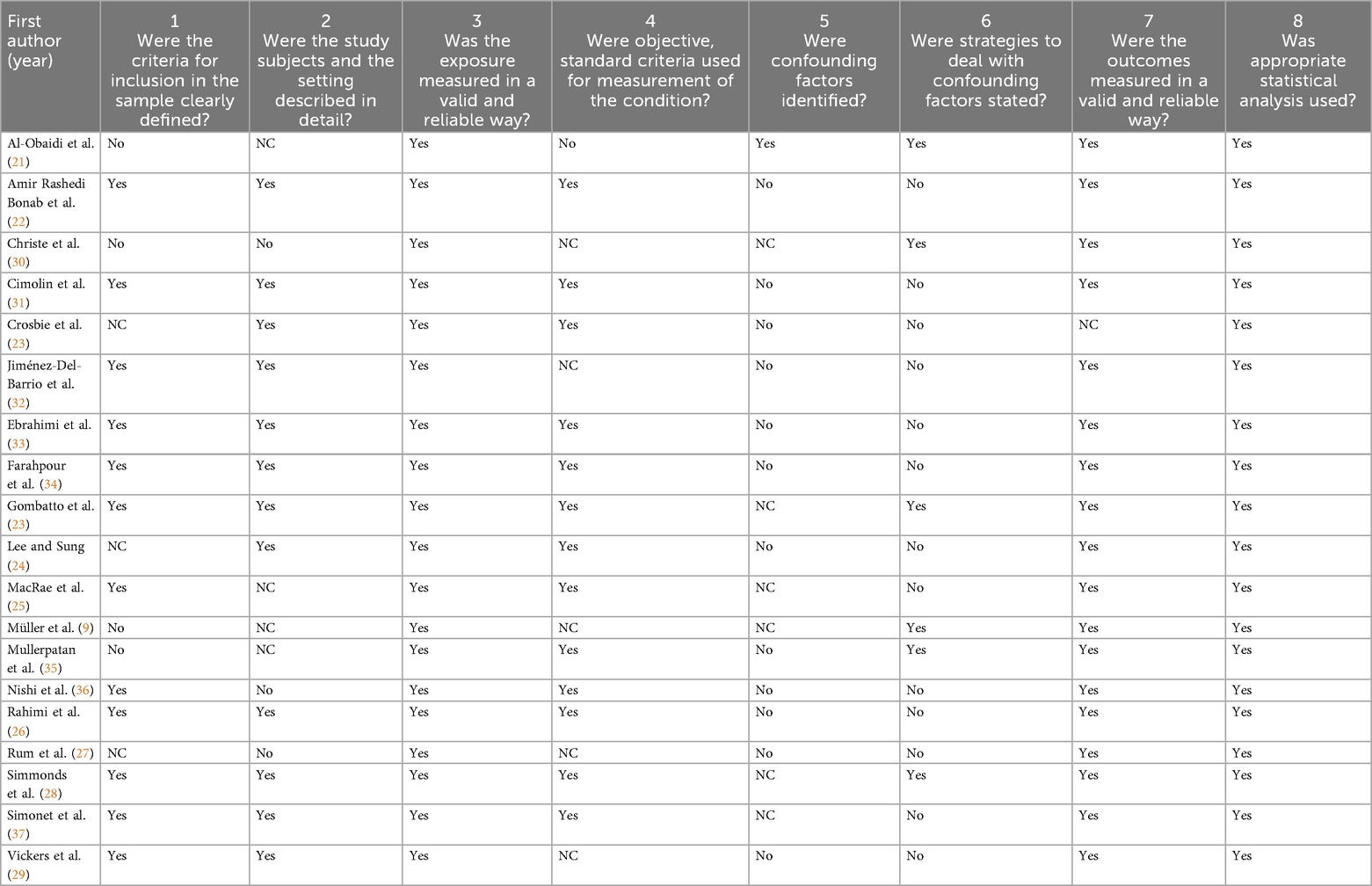 Table 2. Methodological quality of the included studies assessed through the Joanna Briggs Institute (JBI) critical appraisal checklist for analytical cross-sectional studies.