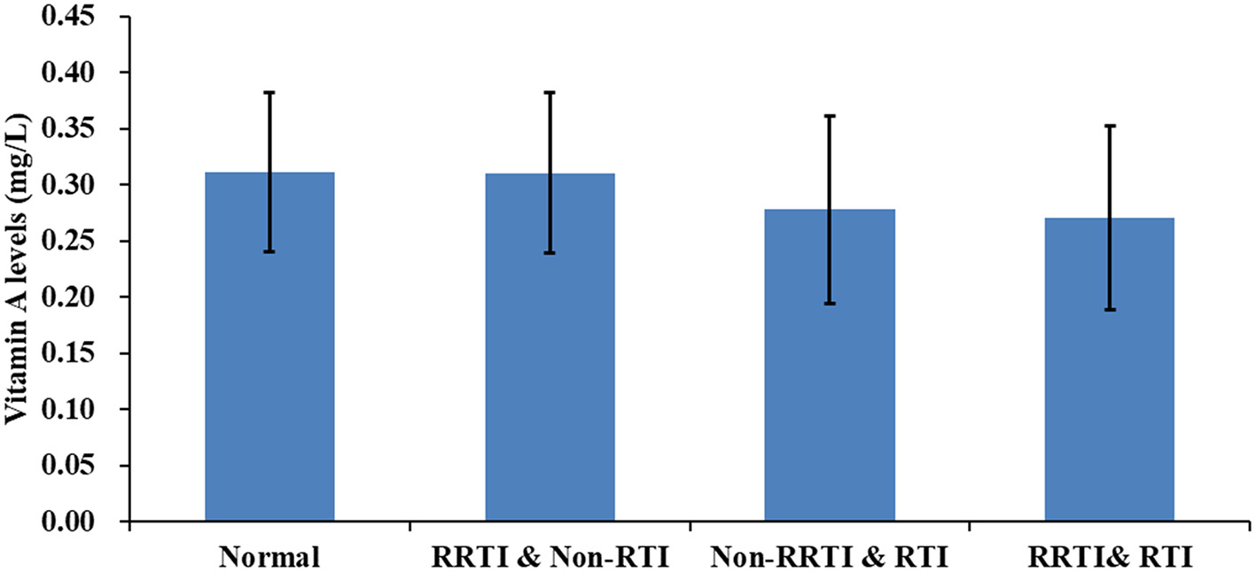 Besides the traditional risk factors of RRTIs, including parental educational level, family medical history of respiratory diseases, parental smoking status, nutritional status, supplemental microelements, immune status, diet status, exercise, and environmental factors (4), previous evidence has suggested that low serum vitamin A levels are significantly associated with high morbidity of RRTIs and respiratory infections (5–7). Consistent with these findings, it has been found that patients with chronic infectious diseases generally present with severe vitamin A deficiency (8). Additionally, a clinical trial on 100 children with RRTI without acute phase response demonstrated that vitamin A supplementation could decrease the morbidity of RRTIs (9).
