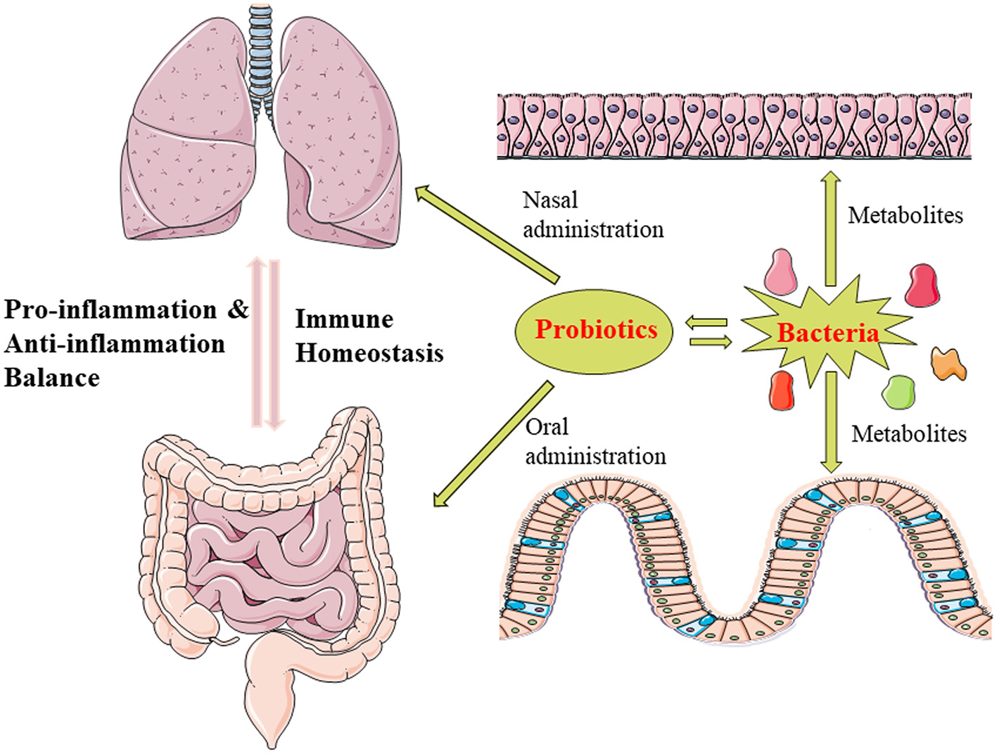 Similar to the role of intestinal probiotics in the prevention and treatment of intestinal diseases, researchers have increasingly focused on the role of respiratory probiotics in the treatment of lung diseases. Probiotics are live microorganisms that have a beneficial influence on the health of the host when given in sufficient doses, with minimal adverse effects and high safety. (70) reported that prophylactic administration of probiotics could reduce ventilator-associated pneumonia in mechanically ventilated children (70).