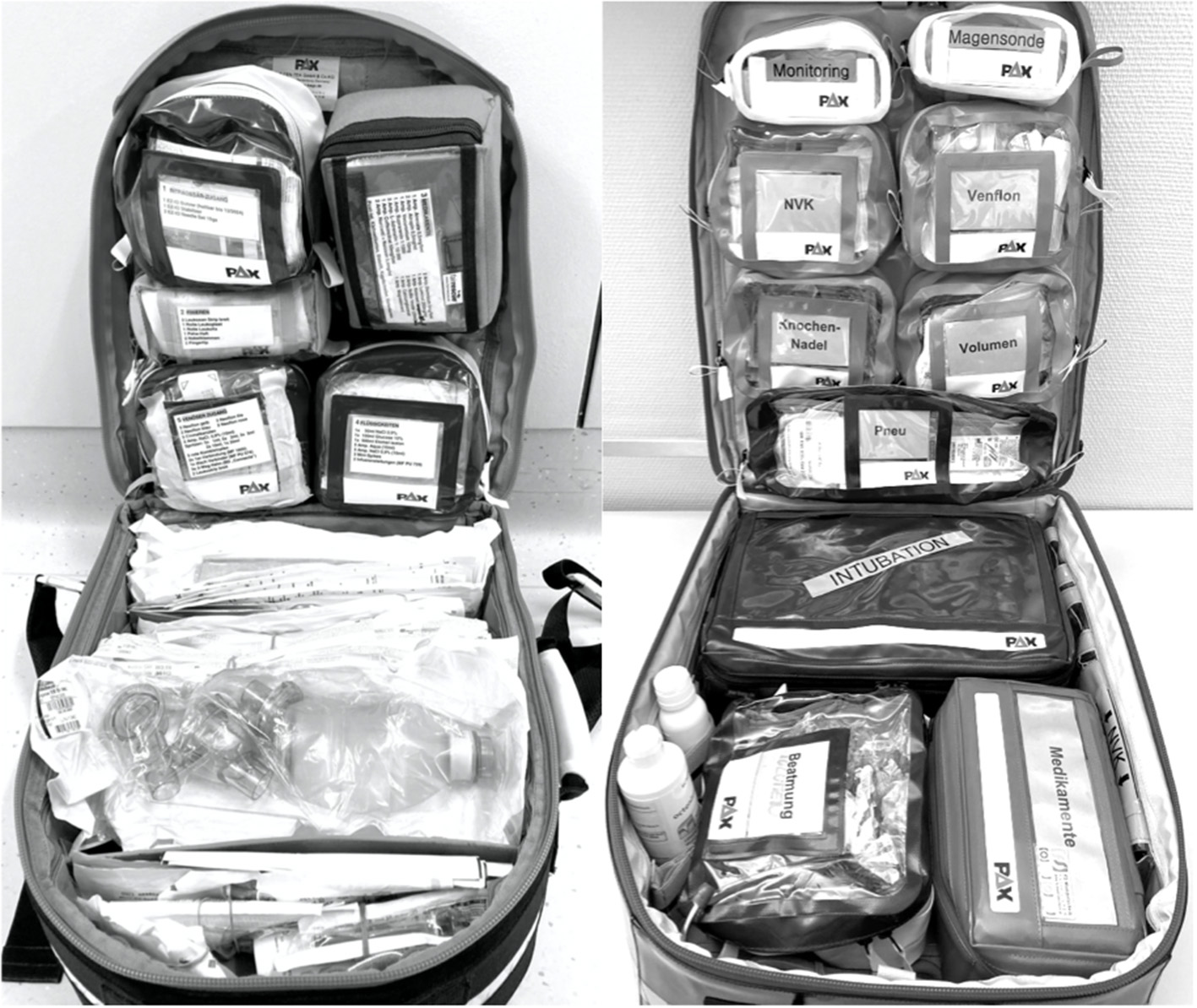 Standardized procedures and required equipment however could already be considered when designing space for equipment storage. Therefore, we developed a task-based package-oriented (TPO) emergency backpack with the goal of storing and packing together equipment for each specific task without the need to retrieve any additional material from other bags. In neonatal units, this approach is often implemented in prepacked sets for umbilical venous catheters (4).