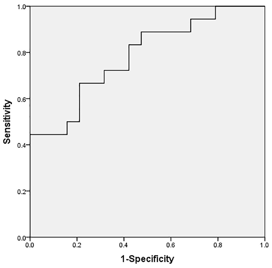 ROC curve of serum NT-proBNP level to predict CPS (cutoff value: 2,395 pg/ml), with a desirable sensitivity (66.7%) and specificity (78.9%) for predicting CPS. The AUC was 0.784 (95% CI, 0.637–0.931).