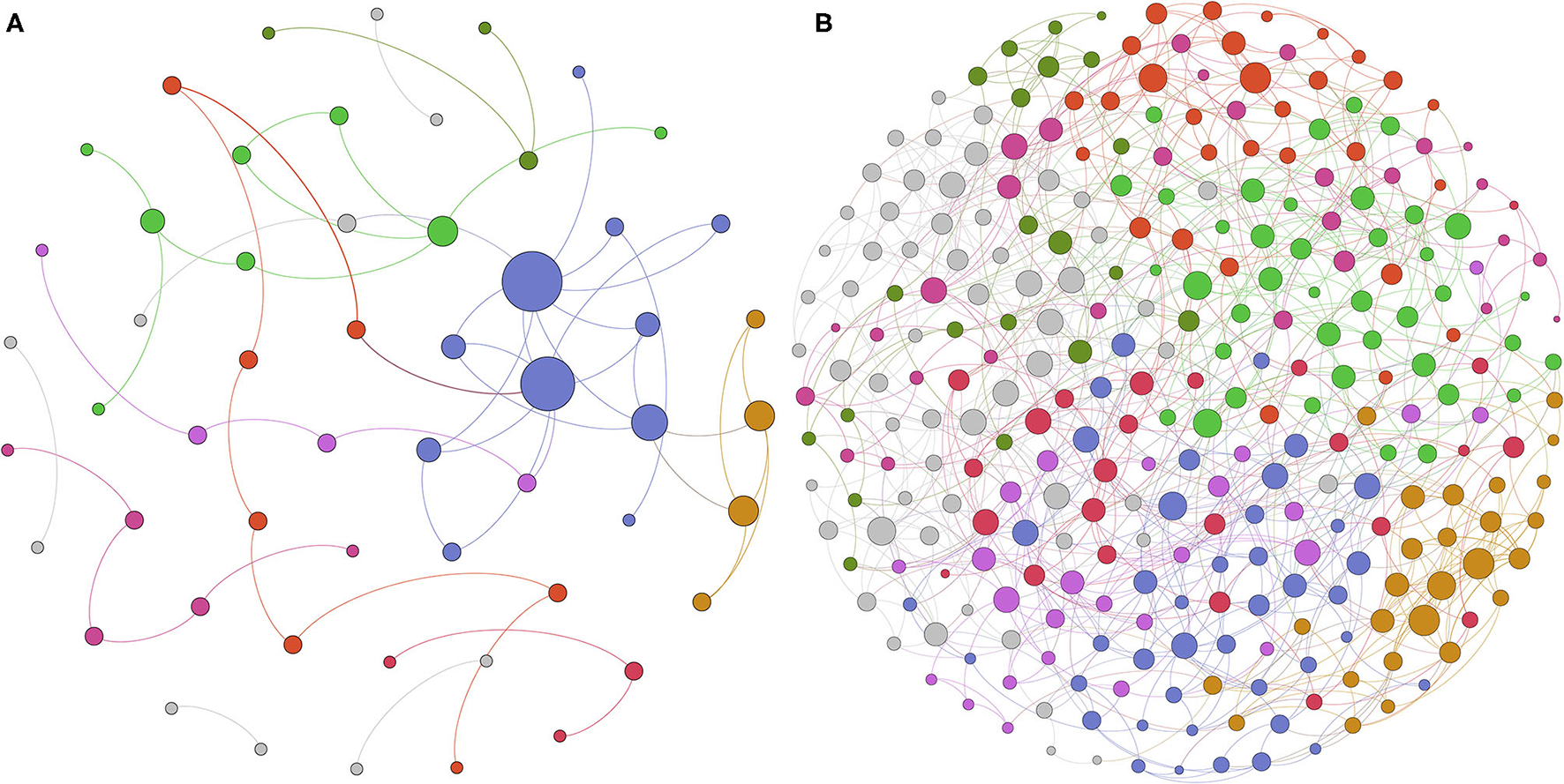 Different microbioal ecological network between before and after delivery with SpiecEasi analysis. (A) Microbial ecological network at the family level in the BD group. (B) Microbial ecological network at the family level in the AD group.