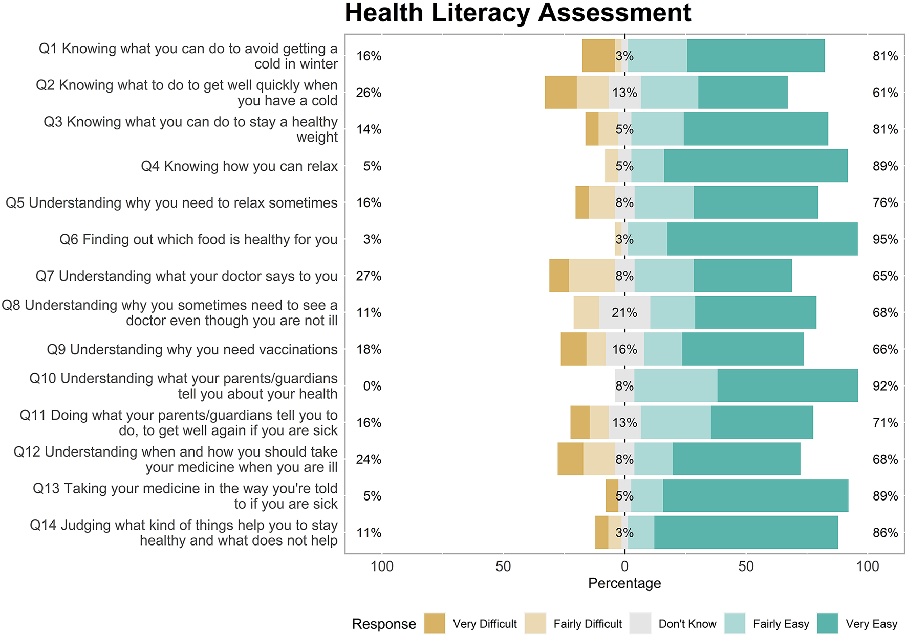 We also assessed participating children's health literacy at the start of the course. We planned to complete the health literacy assessment at the end of the course but the immediate shut down of education at the start of the COVID-19 pandemic meant this was not possible. The study was approved by the Royal College of Surgeons in Ireland (RCSI) research ethics committee REC001719.