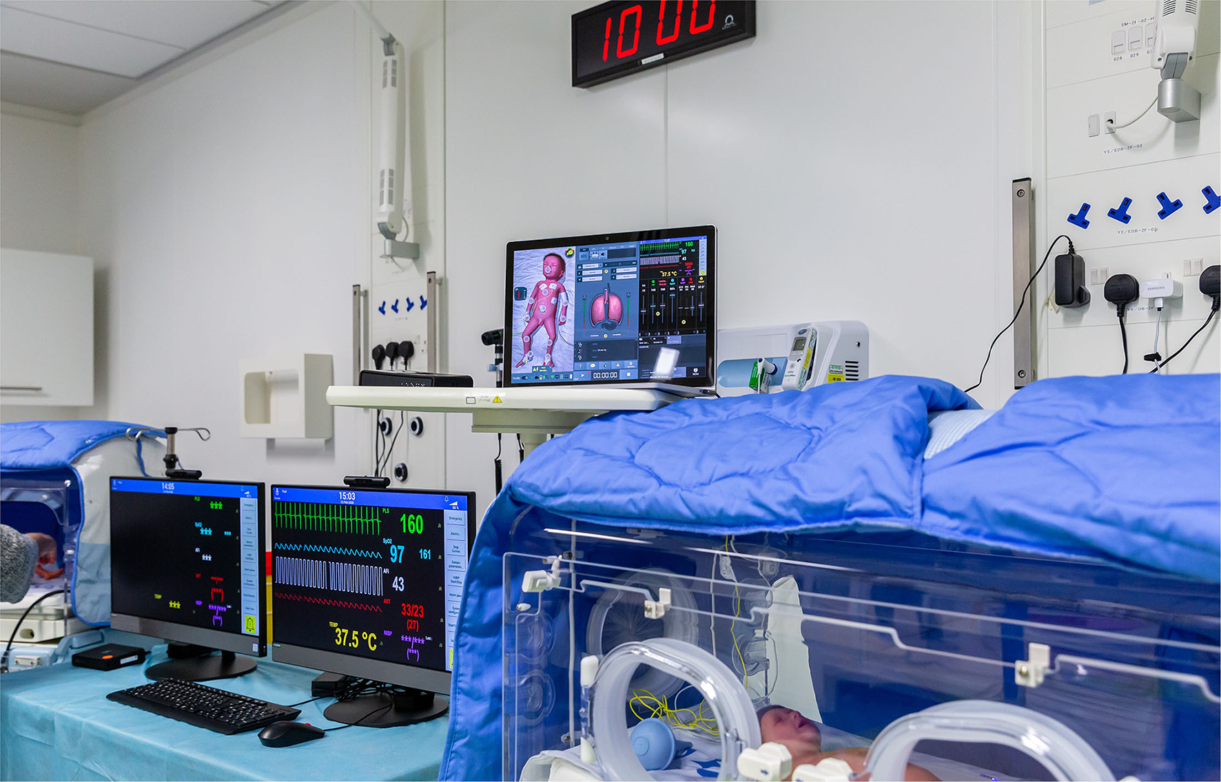 High-fidelity manikin and incubator used in neonatal simulation program events.
