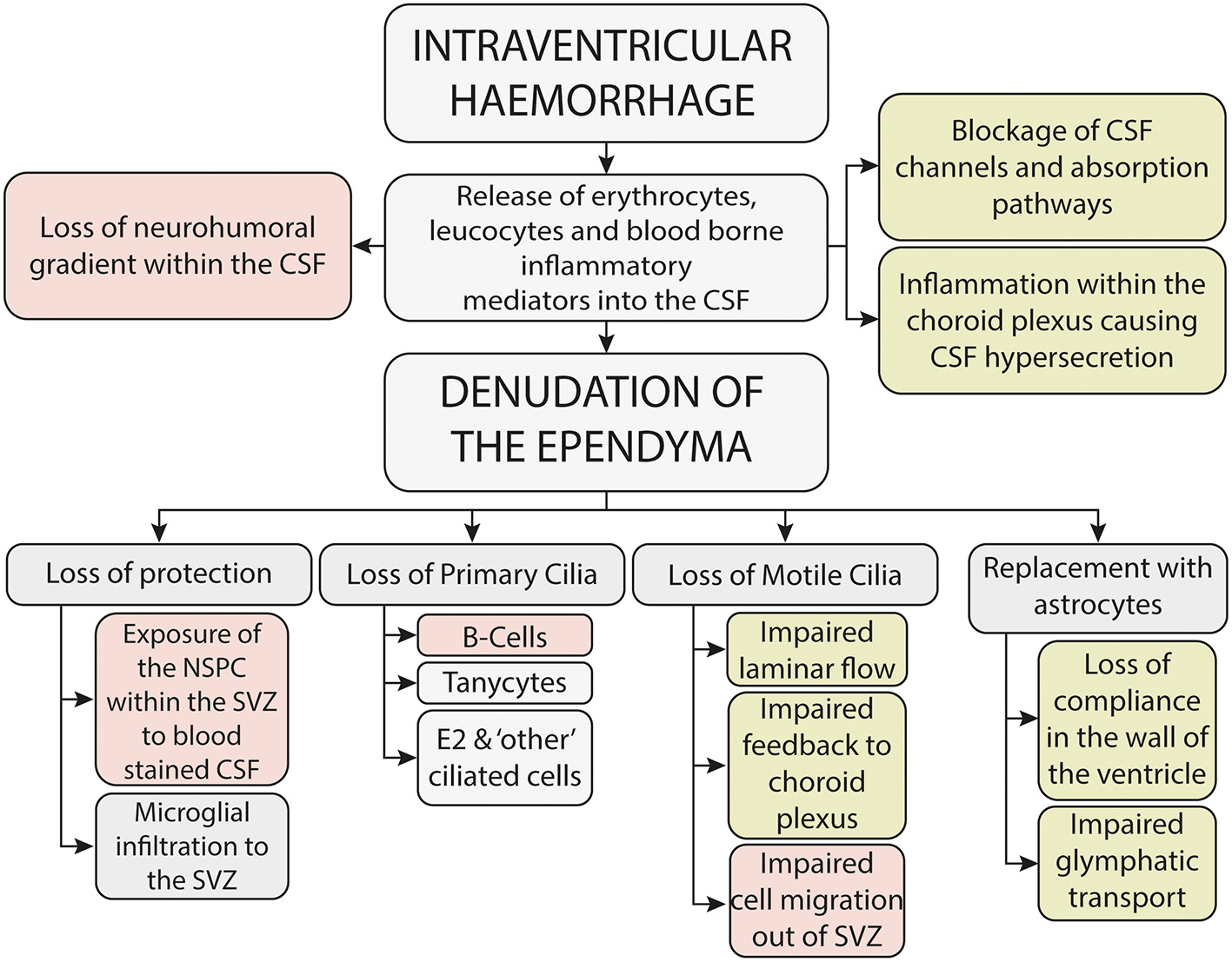 In order to develop new therapies to combat the early toxicity of NIVH more research is needed to understand both the changes that occur in the CSF secondary to hemorrhage and further to this, the impact that these changes have on the developing brain. Specifically, we need to increase our understanding of the mechanisms underlying ependymal denudation and the consequences that this process has on the underlying periventricular cells within the subventricular zone.