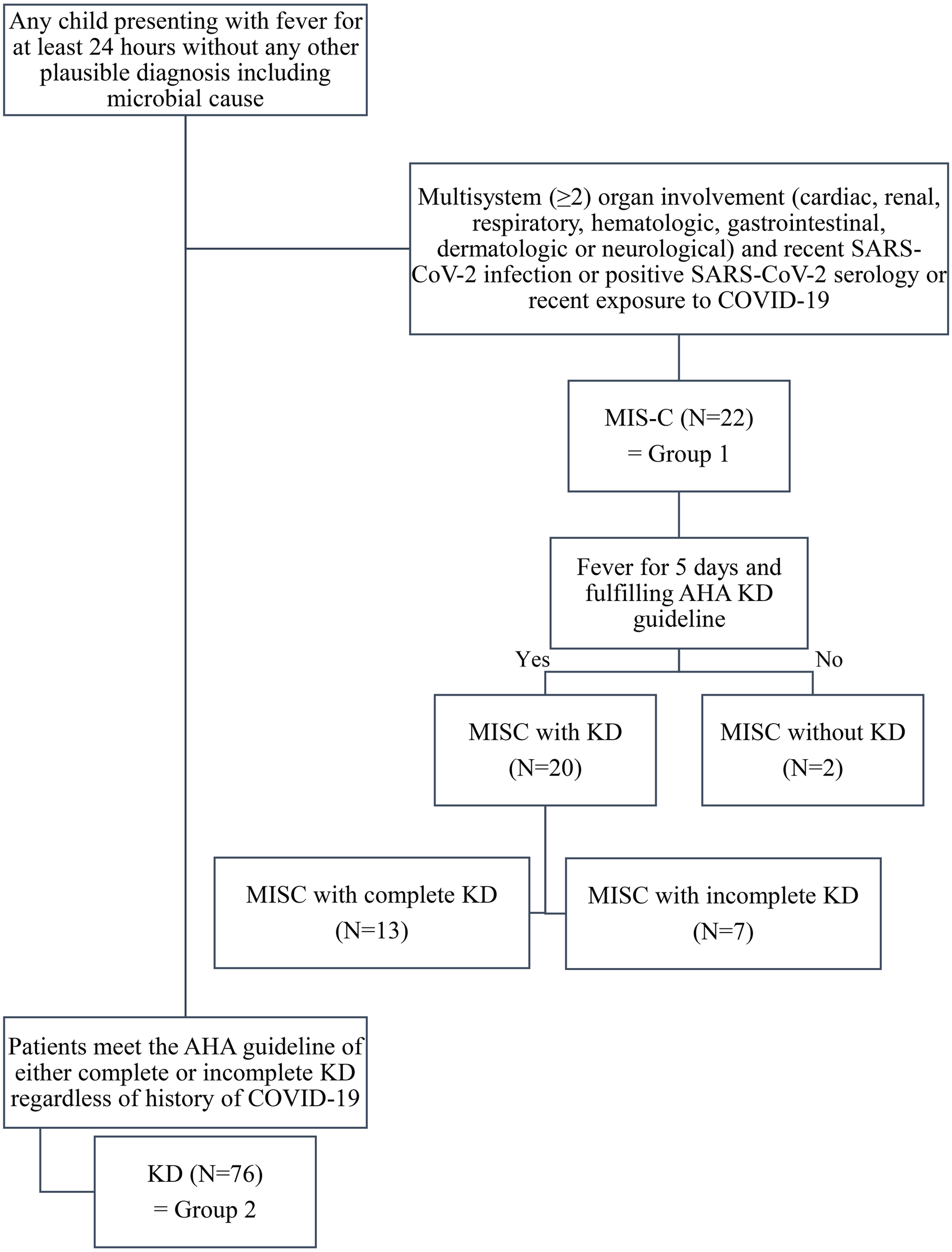 A refractory case of MISC or KD was defined as a case that needed secondary treatment. On the contrary, treatment failure on the first IVIG was defined by persistent fever for 36 h after IVIG only in patients primarily treated with IVIG.