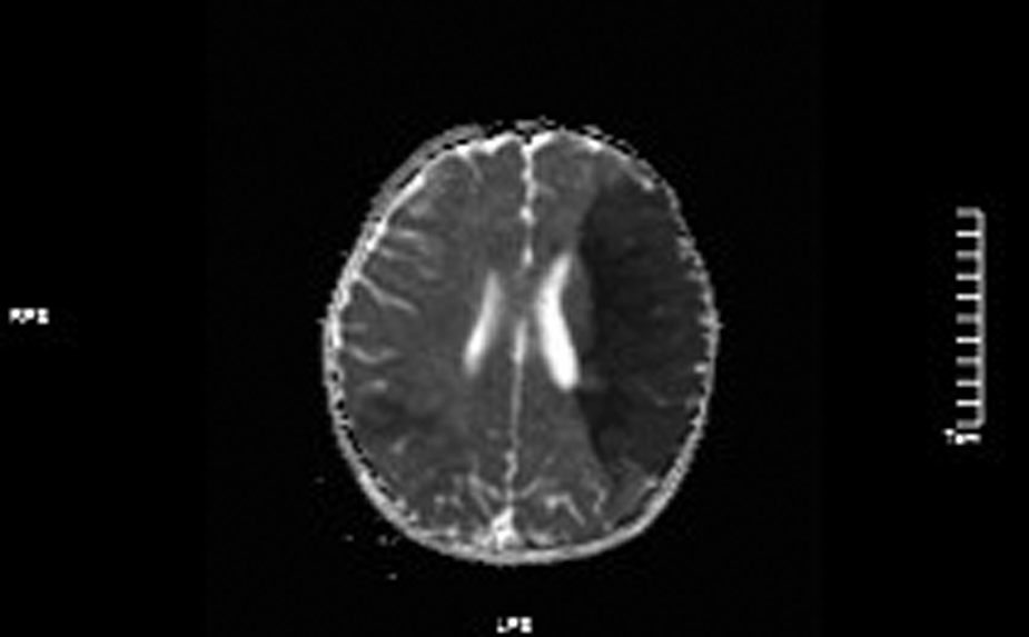 After admission, the patient was given dehydration, lowering intracranial pressure, static shock, trophic nerve and other symptomatic and supportive treatment. Thrombolytic therapy and subcutaneous injection of heparin sodium for antiplatelet therapy were immediately given after the presence of massive cerebral infarction. After treatment, the child had no recurrent convulsions. After treatment for about 12 days, the child's right upper and lower limb muscle strength improved to grade III, and was discharged after long-term oral aspirin antiplatelet therapy. At present, the child patient had no recurrence of cerebral infarction, but the muscle strength of right limb was still grade III, accompanied by movement limitation and slurred speech.