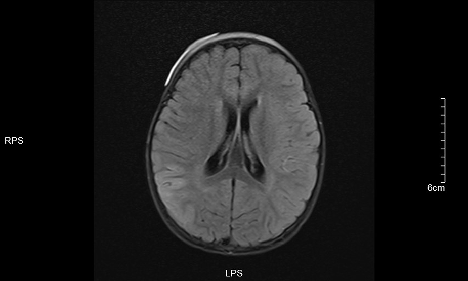 A 21-month-old female child was admitted to our hospital with immobility of the right limb associated with inability to speak for 1 h. One hour ago, the child suddenly developed right limb immobility, inability to stand, with inability to speak, and deviation of the mouth to the left, and recurrent head and right lower limb twitching after admission. He had no fever, no headache or vomiting, and denied any history of cranial trauma. Past medical history: In July 2021, the child visited another hospital due to pneumonia, and chest x-ray showed enlarged heart shadow. Since October 2021, he had bilateral eyelid edema, which was evident in the morning. Eyelid edema had not resolved for several months. Family history: denied any family history of hereditary diseases. Birth history: She was born at term by spontaneous delivery and denied any history of asphyxia rescue. Growth and development history: The growth and development of the child were the same as those of the child of the same age. Admission examination showed T 36.2°C, HR 122 beats per minute, RR 48 breaths per minute, BP 99/64 mmHg, clear consciousness, soft spirit, aphasia, bilateral eyelid edema, bilateral pupils of equal size and round, sensitive light reflexes, shallow nasolabial folds on the right side, regular rhythm, moderate heart sounds, no murmur heard in the precordium, and no special pulmonary or abdominal examination. Muscle strength was grade V in the left upper and lower limbs and grade II in the right upper and lower limbs. Auxiliary examination: blood coagulation function was basically normal; on January 7, 2022, biochemistry (emergency): total bilirubin: 3.9 μmol/L, total protein: 35.6 g/L, albumin: 20.8 g/L, alanine aminotransferase: 20 U/L, aspartate aminotransferase: 49 U/L, creatine kinase: 132 U/L, creatine kinase isoenzyme (mass method): 6.95 ng/ml, urea: 3.22 mmol/L, creatinine: 22.1 μmol/L; blood routine + SCRP showed no significant abnormality;