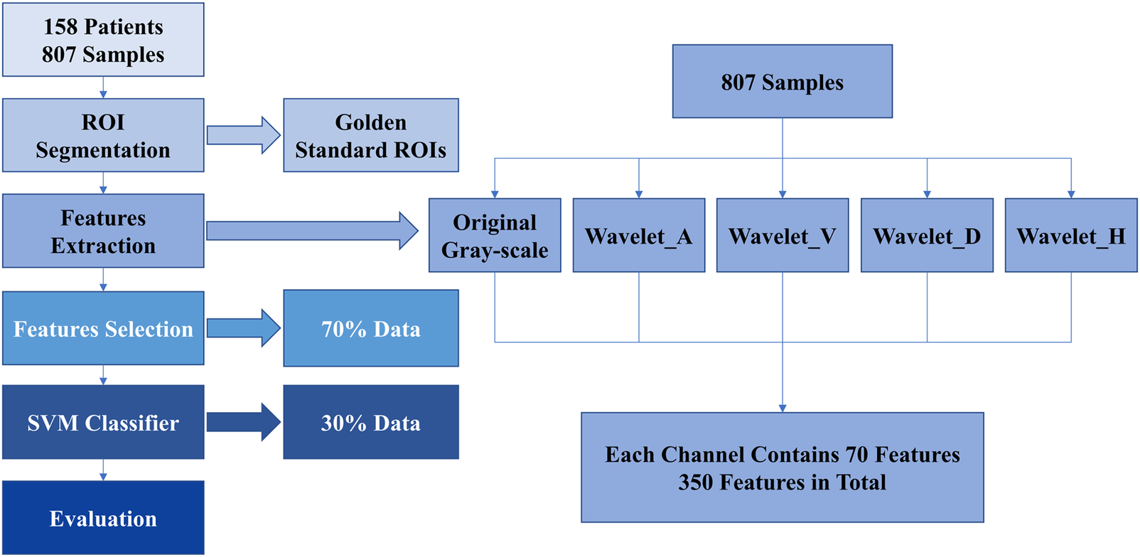 In this part, the golden standard ROIs segmented by radiologists were used in feature extraction.