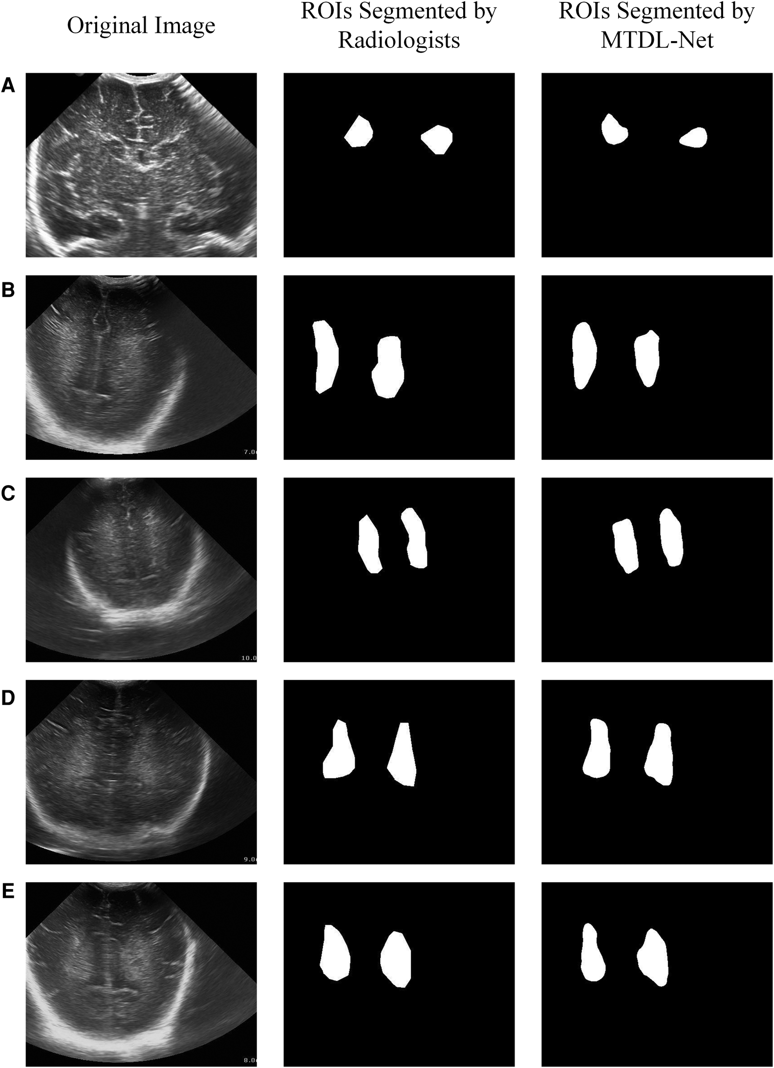 Multi-task learning (MTL) spontaneously learns multiple related tasks, utilizing both generic information shared across tasks and information specific to each task (30). In this part, MTDL-Net achieved automatic segmentation of infant cranial ultrasound images and used the segmented information to achieve prediction of WMI.
