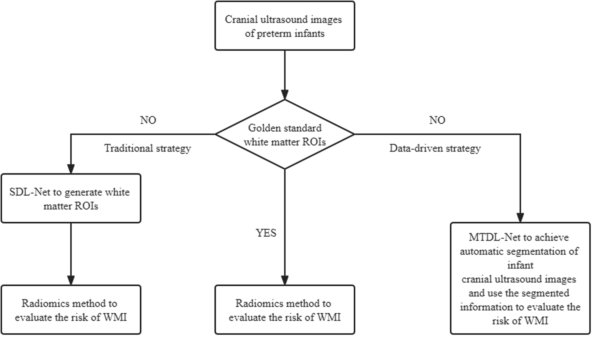In this study, we presented a data-driven diagnostic system for white matter injury in preterm infants. The system combined multi-task deep learning and traditional radiomics features to achieve automatic detection of white matter regions on the one hand, and design a fusion strategy of deep learning features and manual radiomics features on the other hand to obtain stable and efficient diagnostic performance.