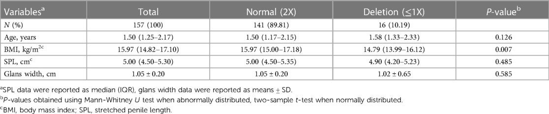 Table 3. Comparison of general characteristics and clinical data of KCTD13 CNV status among hypospadias patients.