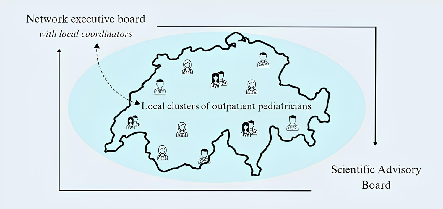 Considering these challenges, the establishment of a nationwide research network of collaborative pediatric care practices is called for. Such an initiative could address research questions affecting the daily activities of primary care pediatricians. Moreover, it could possess the potential to collect structural data from the pediatric outpatient sector, a vital asset from the vantage point of public health. By doing so, pediatric outpatient research could play a crucial role in enhancing child health outcomes and optimizing healthcare delivery (7). Recent studies by Geary et al. (8), Rajamani and Iyer (9) and Arnold et al. (10) underscore the importance of well-structured networks and standardized data collection in improving healthcare quality and coordination. These findings highlight the need for a comprehensive pediatric research network to address gaps in outpatient care. Embarking on this journey, two pioneering pilot projects have taken root in the Cantons of Zurich and Ticino. In Zurich, over 40 pediatric practices, united under the “SentiPED” network, collected longitudinal data on SARS-CoV-2 testing and clinical insights into afflicted pediatric patients during the pandemic (11). This ambitious effort was fortified by the endorsement of Kinderärzte Schweiz, encompassing structural data from participating practices. Likewise, Ticino witnessed the successful implementation of a parallel data collection initiative, “Sentinella Pediatrica”, orchestrated by the Associazione Pediatri della Svizzera Italiana (APSI), which thoughtfully incorporated documentation on the burgeoning concern of long COVID (12). The significance of these localized endeavors is undeniable, serving as a propitious foundation upon which to merge the efforts of collaborative networks of primary care pediatricians. The aspiration to expand these networks to encompass a nationwide scope beckons, but this pursuit mandates careful preparation, starting with the harmonization of governance structures, funding strategies, decision-making processes, and collaborative modes. This crucial groundwork would pave the way for the organic evolution of a dynamic and impactful nationwide research network for primary care pediatricians. Swiss School of Public Health (SSPH+) has also recognized this need and enabled the development of a corresponding white paper through project funding.