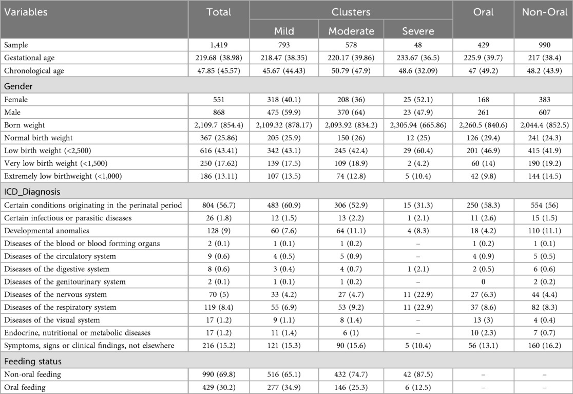 Citation: Feng J, Shu T, Li R, Feng X, Huang Y, Cao J and Peng K (2025) Factors affecting feeding ability in children with neonatal intensive care unit stay: a cluster analysis using machine learning methods. Front. Pediatr. 13:1578612. doi: 10.3389/fped.2025.1578612