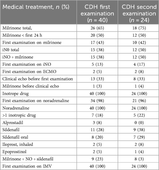 However, early initiation of milrinone treatment may have enhanced cardiac function and thereby improved overall resilience and increased resistance to complications. Compared with in an earlier cohort from Karolinska University Hospital, the use of milrinone and other inotrope drugs had increased (13). Following centralization of CDH surgery in Sweden, there has been a shift in the management of neonates with CDH. Early echocardiograms performed within the 24 h of age and the increased use of inotropes including milrinone is a consequence of more individualized treatment approaches.