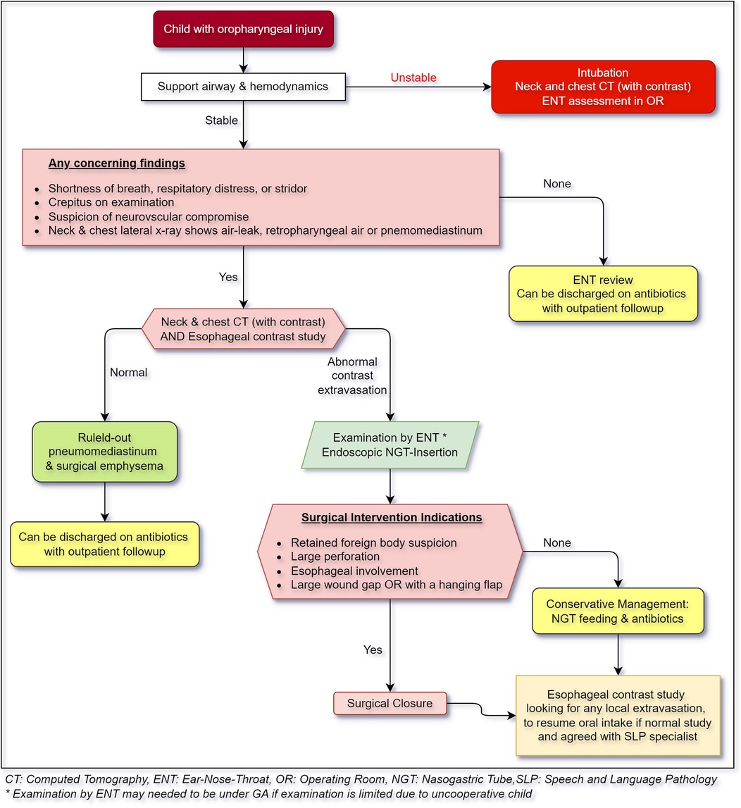 Figure 4. Algorithm for managing pharyngeal injury in children.
