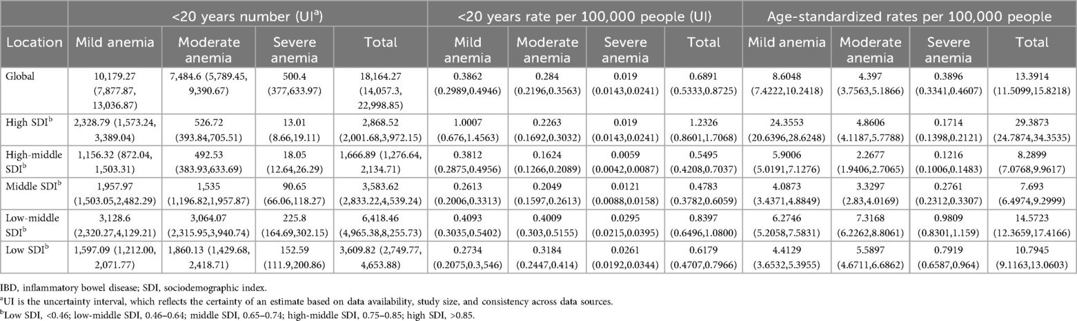 Table 2. Number, rate, and age-standardized rate in 2021 for children and adolescents of IBD-associated anemia by SDI quintile.
