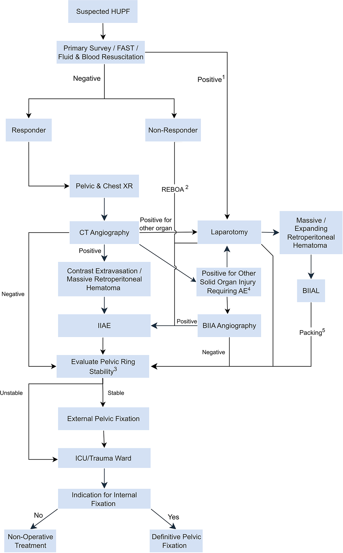 IIAE, internal iliac artery embolization; HUPF, hemodynamically unstable pelvic fractures; REBOA, resuscitative Endovascular Balloon Occlusion of the Aorta; ISS, injury severity score.
