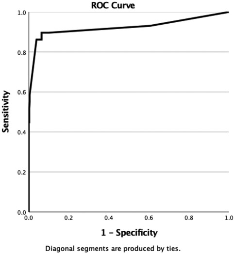 Figure 5. ROC curve of the multivariable logistic regression model predicting malignancy in childhood lymphadenopathy (AUC = 0.92; 95% CI: 0.88–0.96).