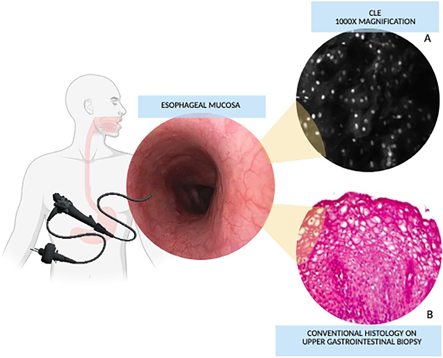 Furthermore, since esophageal biopsy samples represent only a limited portion of the mucosa, they may not accurately reflect the overall extent of inflammation (24). In this context, CLE could be a valuable tool in EoE management, as it enables simultaneous macroscopic and microscopic evaluation of the entire esophagus.