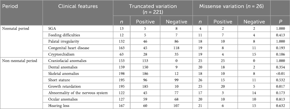 Table 2. Frequency of clinical phenotypes between truncated variation and missense variation of ANKRD11.