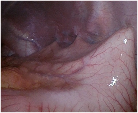 At long-term follow-up, no impairment of gastric peristalsis was observed, and the patient maintained a normal feeding pattern, suggesting that the anterior gastropexy did not adversely affect gastric motility.