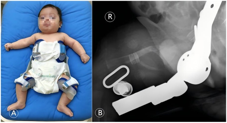 • Orthopedic Intervention: Conservative management with a Pavlik harness was initiated immediately to immobilize the limb in a safe, abducted position (Figure 6) (6).