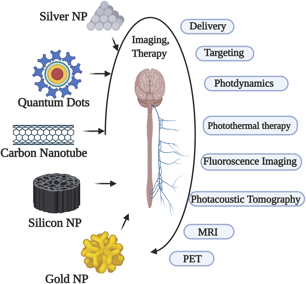 Various nanoparticles and their applications in nervous system.