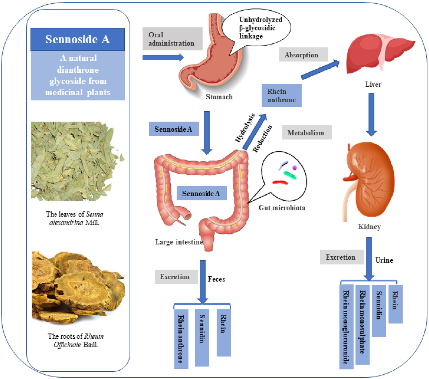 Le J, Ji H, Zhou X, Wei X, Chen Y, Fu Y, Ma Y, Han Q, Sun Y, Gao Y and Wu H (2021) Pharmacology, Toxicology, and Metabolism of Sennoside A, A Medicinal Plant-Derived Natural Compound. Front. Pharmacol. 12:714586. doi: 10.3389/fphar.2021.714586