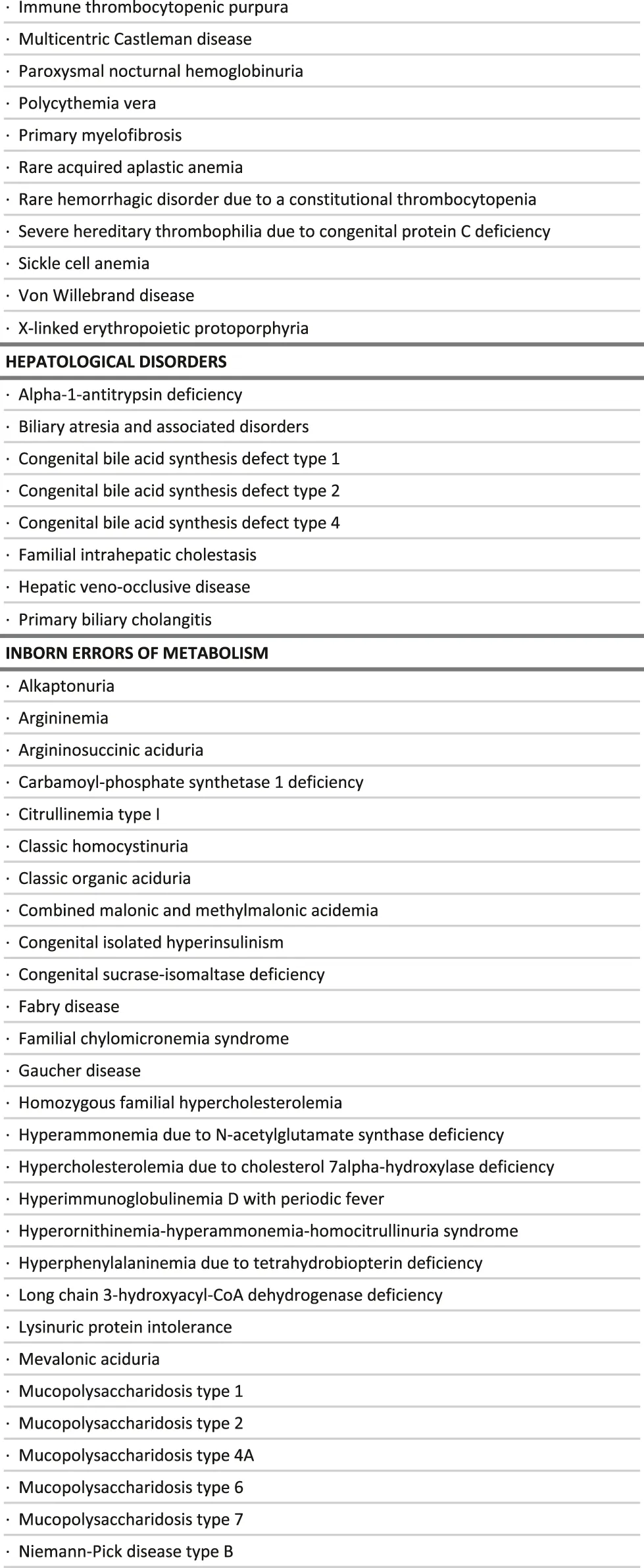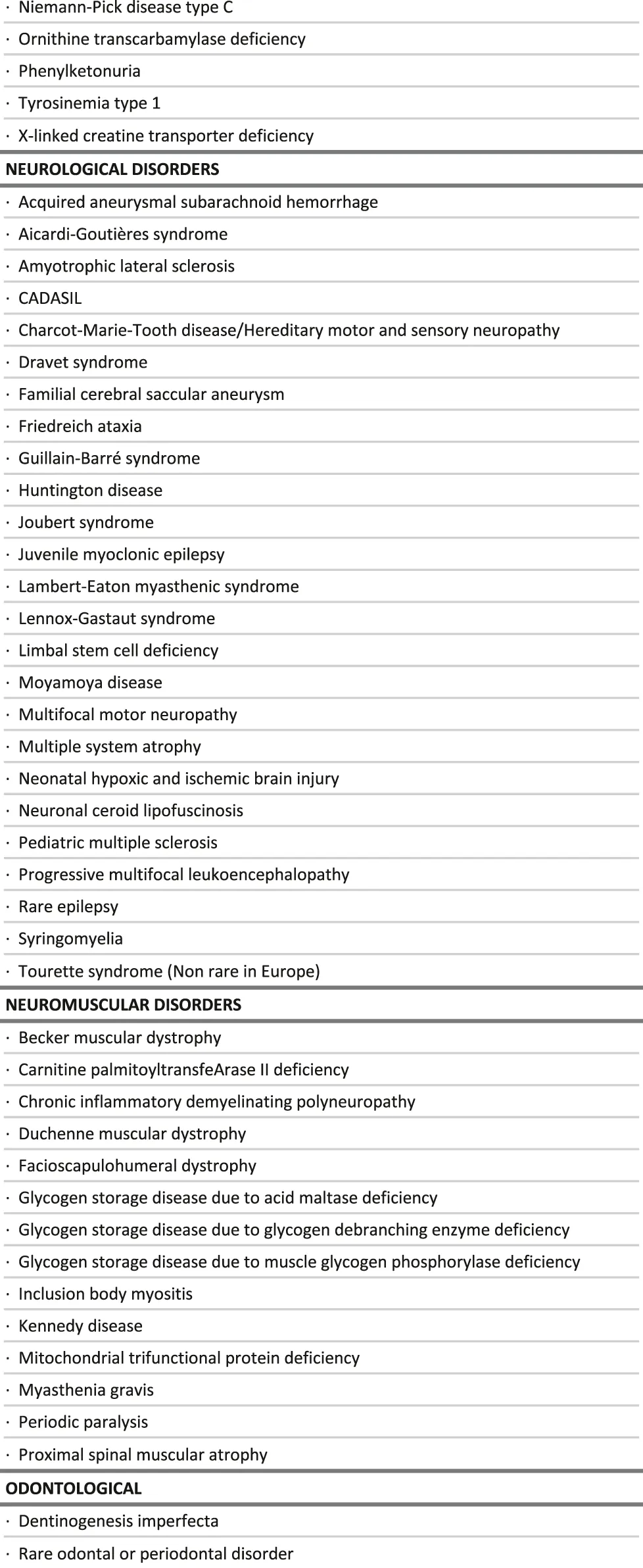 Undoubtedly, this preliminary list is to be updated, validated by experts from ERNs for the feasibility to reduce the time to diagnosis, and adapted to local situations, before using it to make decisions.