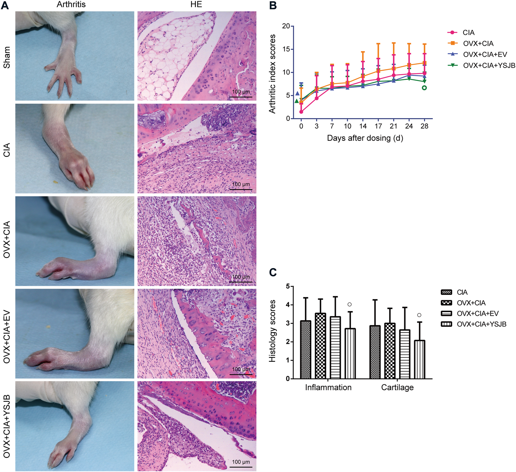 YSJB reduces the arthritis index scores in OVX + CIA rats to prevent arthritis progression