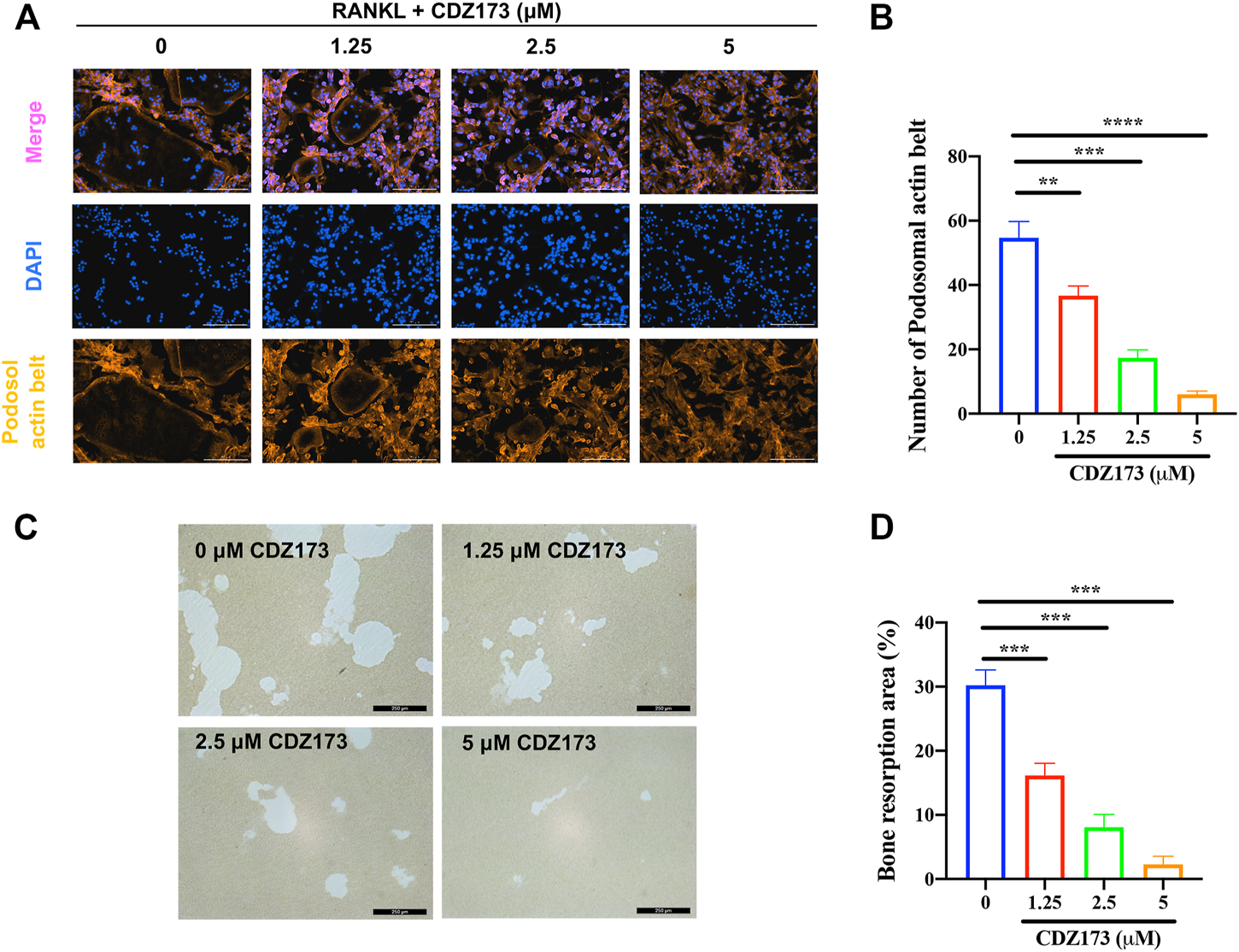 CDZ173 inhibited bone resorption and podosol actin belt formation