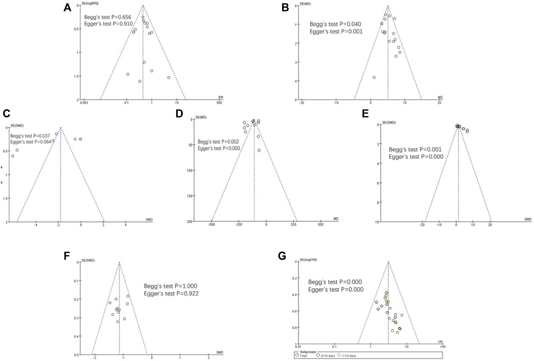 All included studies published complete data and did not report selective results, so the risk of missing outcome data, measurement of the outcome, and selection of the reported result was considered as “low”. In addition, 13 (Zeng, 2005; Li et al., 2006; Zhang, 2011; Zou, 2013; Meng, 2014; Li, 2015; Li, 2016; Sun, 2016; Wang, 2018; Zhao, 2018; Wang, 2020; Zhang, 2020; Wang, 2021) articles had only one author, which led to a high risk of randomization process. In addition to these 13 studies, others studies did not state blind methods, so the risk of randomization process was considered to be some concerns. The risk of deviation was considered low because no deviation from the expected outcome was seen in any of the RCTs. Figure 2 presented the risk of bias results for the included RCTs.
