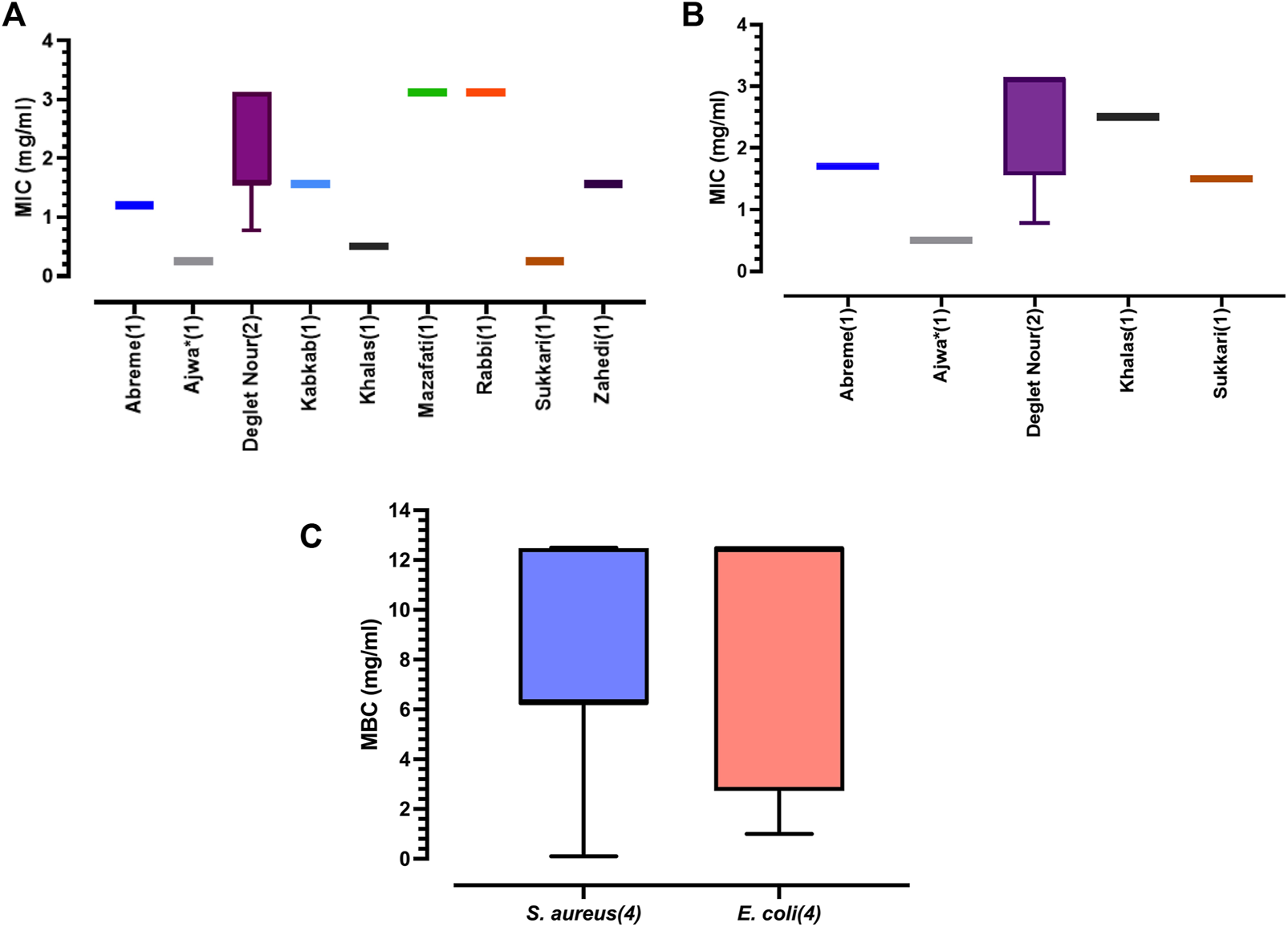 Selim S. Abdel-Mawgoud M. Al-sharary T. Almuhayawi M. S. Alruhaili M. H. Al Jaouni S. K. et al (2022). Pits of date palm: Bioactive composition, antibacterial activity and antimutagenicity potentials. Agronomy12 (1), 54. 10.3390/agronomy12010054