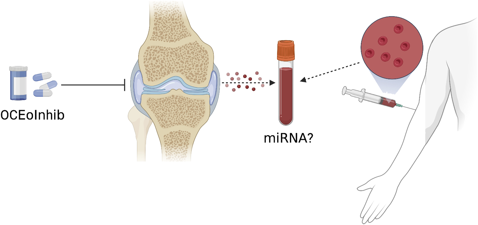 A new OC-targeted exosome inhibitor (OCEoInhib) to block Rab27-mediated OC exosome release. The measurement of OC miRNA in circulating exosomes could be used to diagnose illnesses and monitor their treatments.