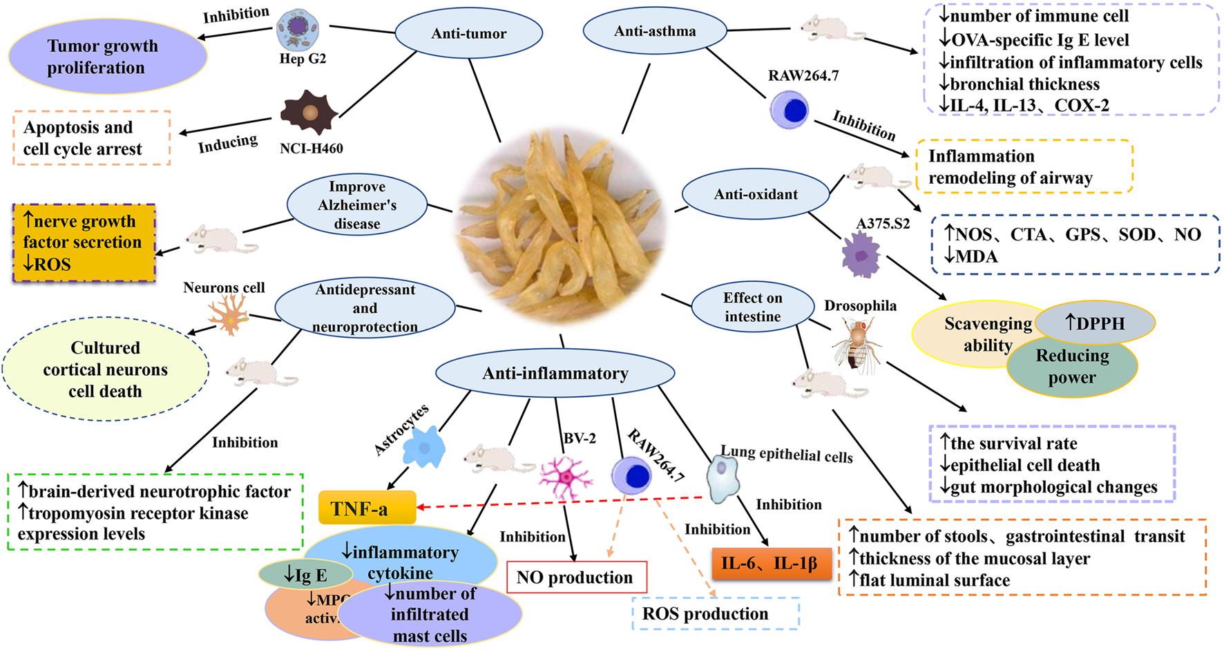 In the past few decades, A. cochinchinensis has attracted widespread attention as an important herbal medicine. Significant progress on isolation and identification of active constituents in A. cochinchinensis have been made in relevant researches. So far, more than 90 components have been isolated and identified. They mainly include steroidal saponins, C21-steroids, lignans, polysaccharides, and amino acids. At present, A. cochinchinensis has a variety of pharmacological effects and has curative effects in the treatment of asthma, tumor, Alzheimer’s disease, gut diseases, inflammatory diseases (Lee et al., 2009; Lei et al., 2016; Choi et al., 2019; Zhang R. S. et al., 2021). Besides that, medicinal prescription research also has revealed that it functions synergistically in combination with various herbal medicines (Weiying et al., 2006; Jung et al., 2014). With the in-depth exploration of TCM the exploitation and utilization of traditional herbal medicine in the prevention and treatment of various diseases are steadily increasing.