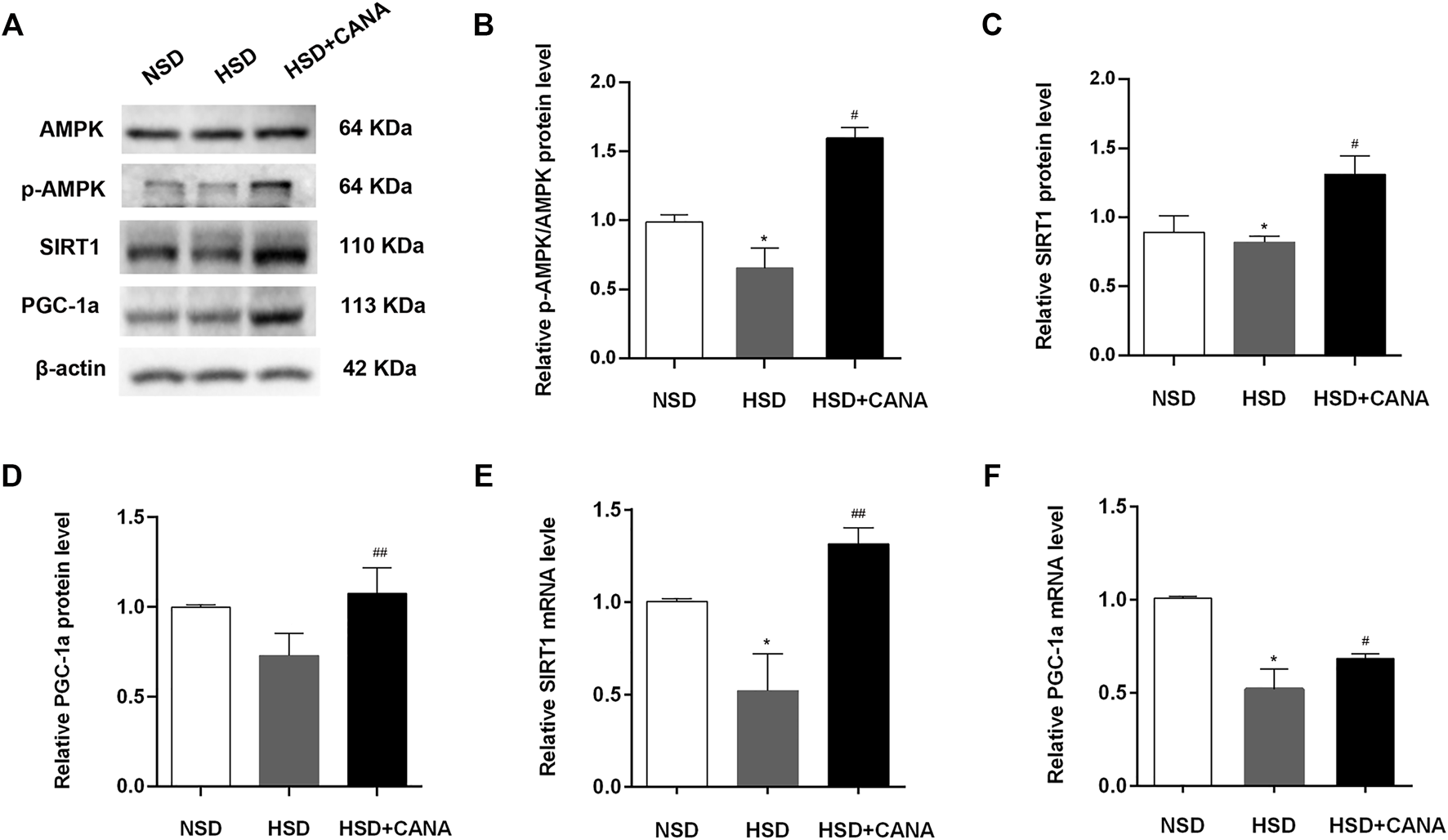 CANA, canagliflozin; NSD, normal-salt diet; HSD, high-salt diet; LDLC, low-density lipoprotein cholesterol; *p < 0.05, **p < 0.01 vs. NSD. #p < 0.05, ##p < 0.01 vs. HSD.
