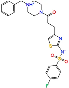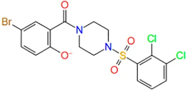 Experiments were designed to test the effect of compounds on the PGK-catalyzed reaction in vitro based on PGK kinase activity. As the PGK self-catalyzed reaction is rather rapid and not easily detectable, an indirect approach was used by coupling the PGK-catalyzed reaction with the pyruvate dehydrogenase (GAPDH) catalyzing the production of 1,3-BPG from glyceraldehyde phosphate. The substrate for the PGK forward reaction is 1,3-BPG, and if the PGK-catalyzed reaction is positively enhanced, which can cause a significant decrease in the concentration of 1,3-BPG in the reaction system, promoting the GAPDH forward reaction. The product of the GAPDH forward reaction, NADH, has strong absorption at 339 nm, and thus the strength of the PGK reaction can be monitored by the changes in NADH. To test the effect of compounds on the activity of PGK1, an in vitro assay was carried out. Purified hPGK1 was provided with substrates (ADP and 1,3-BPG) and the positive response accumulating NADH was then measured. The results showed that within a certain range, activation of PGK1 by 7979989 (10 μM-1 nM), Z112553128 (10 μM-1 nM), and AK-693/21087020 (1 μM-1 nM) caused a positive PGK response, thus promoting a positive GAPDH response to produce NADH. However, AK-693/21087020 inhibited PGK1 activity at 10 μM, and this difference may be due to the difference in drug-PGK1 interaction forces. The binding modes of these three compounds are shown in Figure 3. Theoretically, 7979989 and Z112553128 have the same molecular backbone, so they produce similar forces when they bind to the surrounding amino acid residues, and thus they are similar in terms of activity. While the structure of AK-693/21087020 is quite different from others resulting in different interactions with protein and different activities.
