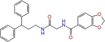 The combination of computational and experimental strategies is of great value for the identification and development of desirable compounds. Structure-based virtual screening (SBVS) has been used for decades in early drug discovery to search chemical compound libraries for novel bioactive molecules against a particular drug target (Kontoyianni, 2017). The computational technique underlying virtual screening, molecular docking, is widely used in modern drug design to explore ligand conformations at the binding site of macromolecular targets (Ferreira et al., 2015). The ligand-receptor binding free energy, estimated by assessing the ligand binding mode during intermolecular recognition and the corresponding intermolecular interactions, provides a scoring ranking of docked compounds based on the binding affinity of the ligand-receptor complex (Huang and Zou, 2010; Lopez-Vallejo et al., 2011). The technique is fast enough to allow virtual screening of ligand libraries containing tens of thousands of compounds in a short period of time (Forli et al., 2016). In this study, a virtual screening procedure was established as shown in Figure 1. Initially, 73355 compounds were filtered based on Lipinski’s rule of five and ADMET property prediction, and 35414 compounds remained. Next, molecular docking was performed using the Libdock module to perform a rough screening of the compounds and the top 4% compounds with the highest docking scores were retained. Then, an exact docking was performed using the Glide XP module and retained the top 20% compounds with the highest scores. Finally, hierarchical clustering was performed using the Canvas module to yield 20 groups of compounds, from where 19 compounds were selected by analyzing the receptor-ligand binding mode, ligand spatial site resistance and backbone characteristics of the compounds. We successfully purchased 11 of them (No 1-11 as listed in Table 1) for subsequent bioassays.