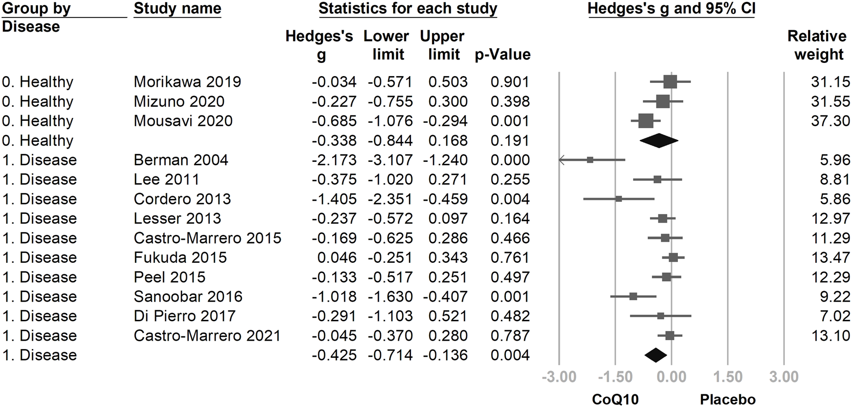 | Morikawa (2019) | Japan | Healthy subjects | CoQ10: 16/14b Placebo: 16/14 |