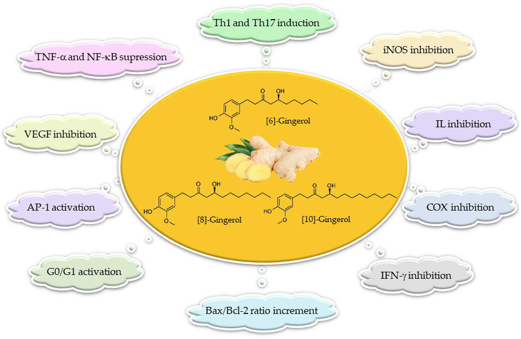 In the treatment of inflammatory and immune-related diseases resulting from defects or disorders of the immune system, modulation of the immune response is necessary. Immunomodulators are substances used to modulate components of the immune system, and there are many chemical immunomodulators on the market that treat inflammatory diseases. However, many of them have side effects. To search for safer drugs, natural-origin compounds come to the fore in the search for new drugs, and the traditional uses of these compounds also shed light on this research (Yuandani et al., 2021). The interest in gingerols, which are the subject of such studies, is increasing day by day; therefore, in this review, the immunomodulatory activities of gingerol and its underlying mechanisms along with the contributions of newly developed nanodrug delivery systems will be discussed.