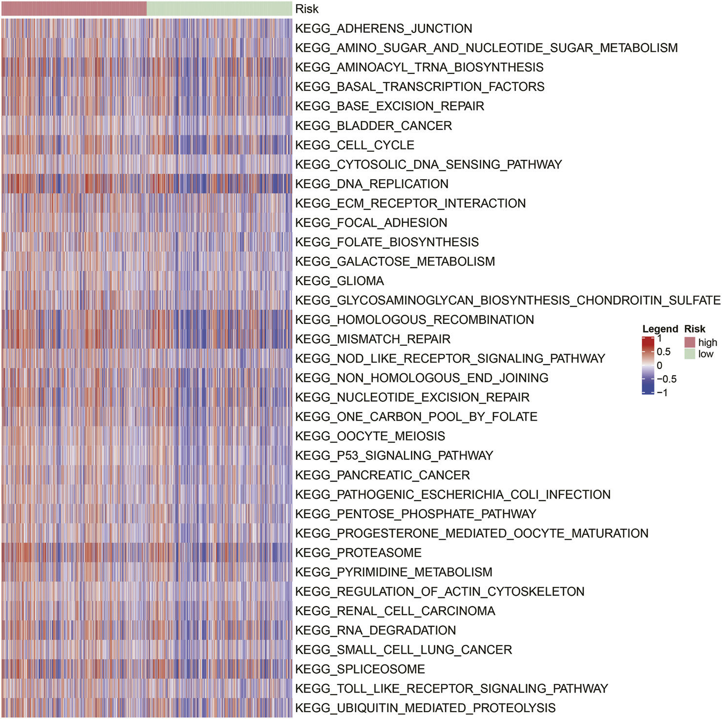 Heatmap of KEGG pathway enrichment in high- and low-risk groups of NSCLC patients.