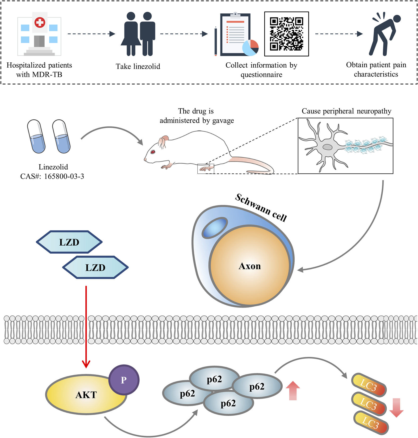 In conclusion, our current study identifies the peripheral neurotoxicity of linezolid and verifies that linezolid is achieved by blocking autophagy flux (Figure 6). This may be a potential strategy to intervene in linezolid-induced peripheral neuropathy.