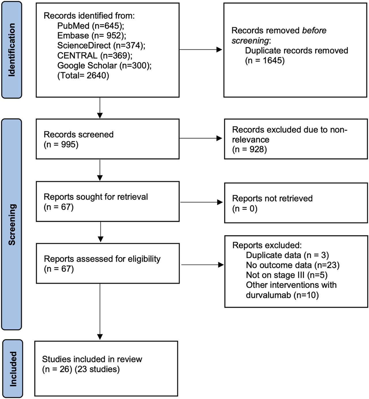 Methods: PubMed, CENTRAL, ScienceDirect, Embase, and Google Scholar were searched for observational studies reporting the use of durvalumab for NSCLC till 12th April 2022. Twenty-three studies with 4,400 patients were included.