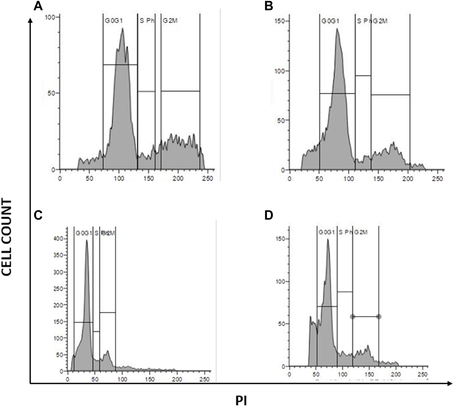 To determine at which stage the cell has been inhibited to undergo cell division, we performed a cell cycle analysis using a flow cytometer. PacR/MCF-7cells treated with desired drug combinations for 24 h, along with untreated cells. Cells were collected and pelleted down. The pellet was then washed twice with 1X PBS. After completing the washing steps, the pellet is suspended in 50 µL of 100 μg/mL RNase and 200 µL of 50 μg/mL Propidium Iodide and immediately analyzed cells using a flow cytometer (BD Acquri).