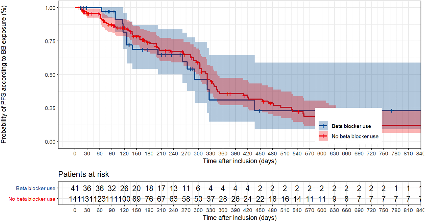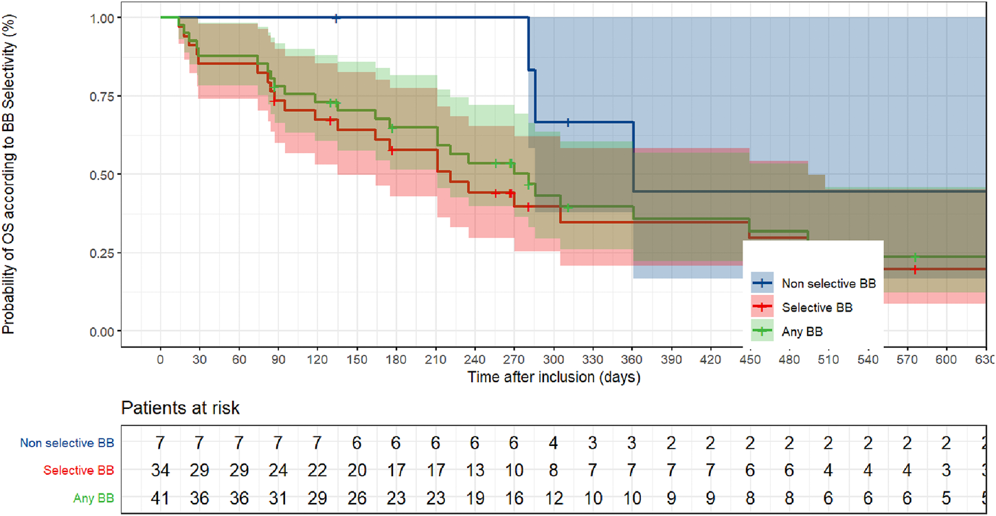 This BETAPANC study aimed to assess the effect of BB exposure on the OS and PFS of patients with advanced PDAC. Additionally, differences in survival outcomes between non-selective and selective BB were explored.